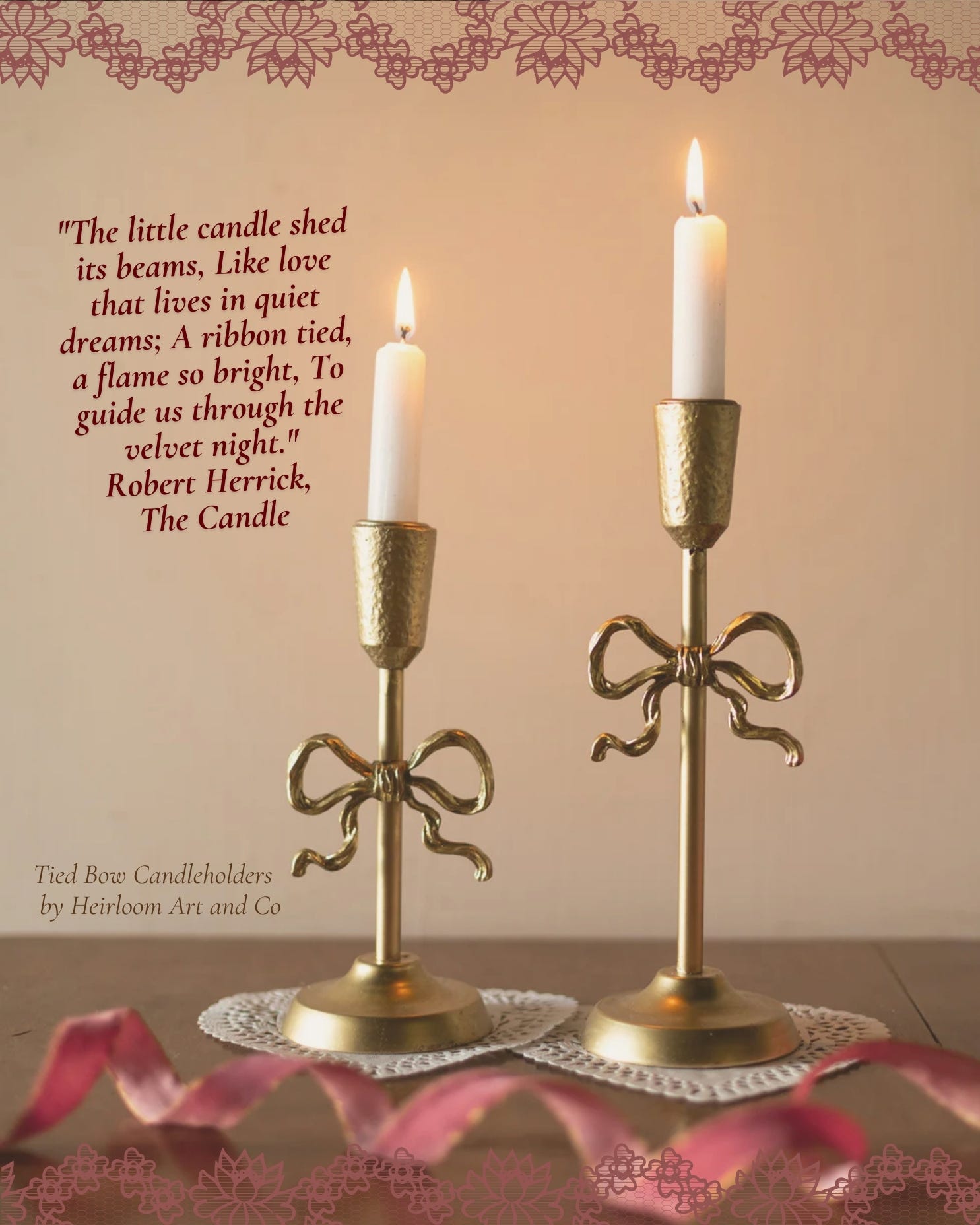 “The little candle shed its beams, Like love that lives in quiet dreams; A ribbon tied, a flame so bright, To guide us through the velvet night.”